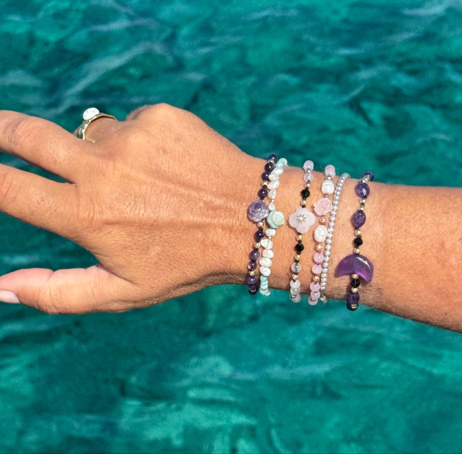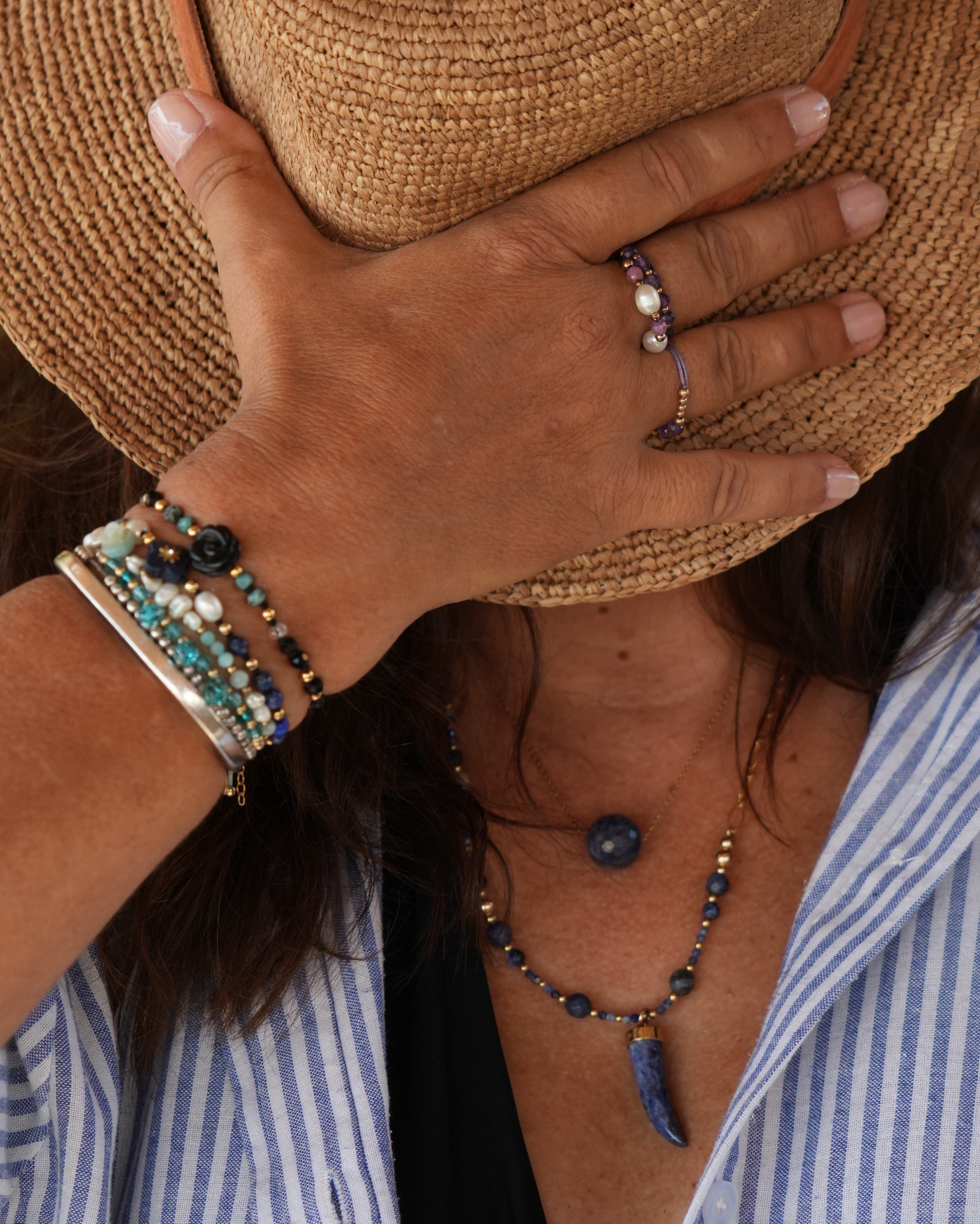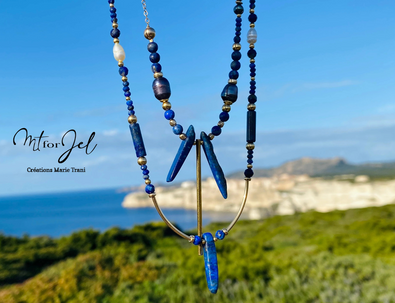 Découvrez les univers poétiques de Marie Trani à travers ses différentes collections. Bijoux en pierres fines noués à la main, tableaux inspirés par la mer ou la ville, créations uniques façonnées avec amour entre Bonifacio et Marseille. Chaque collection reflète une émotion, un souvenir, une couleur du cœur. Laissez-vous guider.