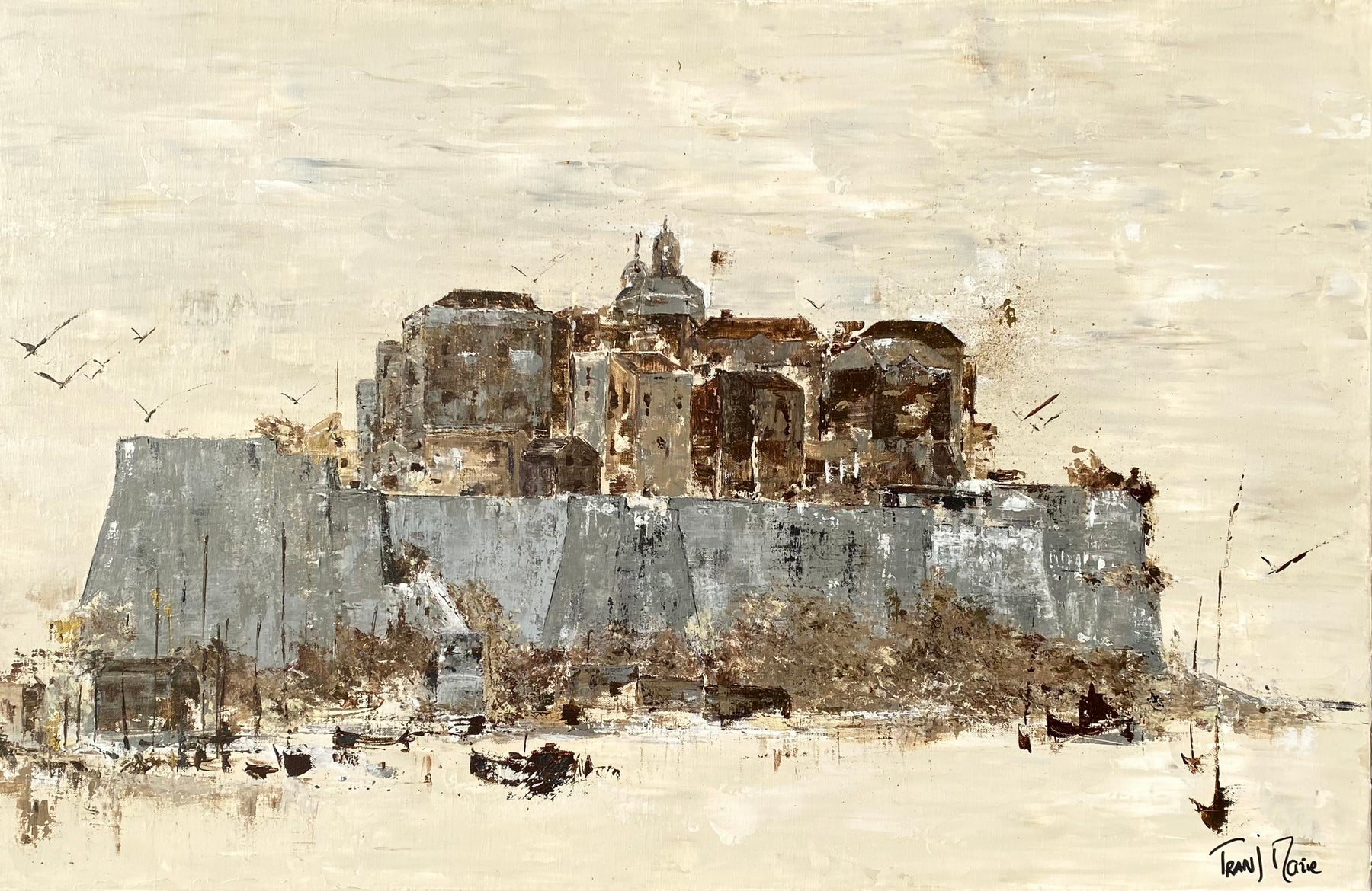 Après avoir jeté mes émotions dans de vives abstractions, j'ai rendu hommage à ma ville de coeur, Bonifacio, dans des semi-figuratifs aux tons doux et chauds, comme des cartes postales d'antan.